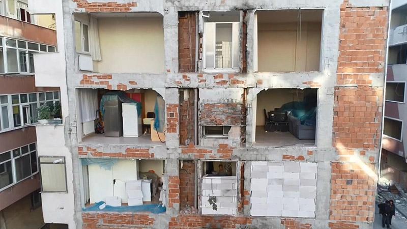 Bahçelievler'de bina yıkılınca ortaya çıktı; 40 sene boyunca iki apartman tek duvarı kullanmış