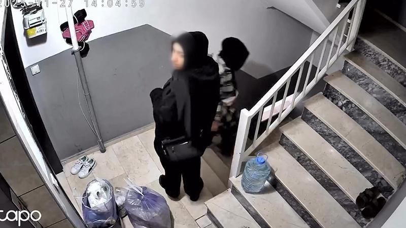 Bahçelievler’de bir binaya giren 2 kadın dairenin kapısını yoklamaya başladı. Kadınlardan biri merdiveni diğeri de kapıyı kontrol ettiği sırada uzaktan güvenlik kamerasına bağlanan ev sahibi 2 kişinin dairenin kapısının önünde beklediğini fark etti. Kameradan kadınlara seslenen ev sahibi, ,'Kime baktınız kime', 'Sizi görüyorum gelin bakayım buraya gelin' diyerek tepki gösterdi. Neye uğradığını şaşıran kadınlar binadan ayrıldı. Diğer yandan kadınlardan şikayetçi olan Senanur A.'nın ifadesinde "Abime kapının önünde biri olduğuna dair bildirim gitmesi üzerine abim kamerayı kontrol etmiş ve 2 kadının kart benzeri cisimle ikamet kapısını zorladıklarını görmüş ve kameradan seslenerek korkutmuş. Kadınlar da gitmiş." dediği öğrenildi.