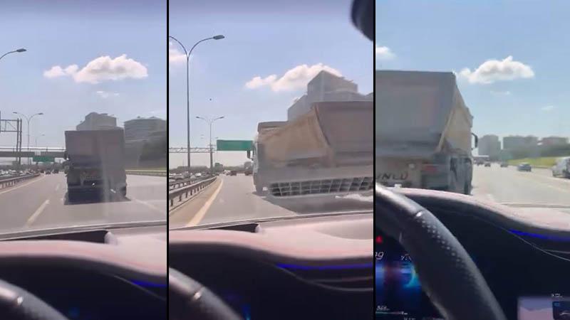 Bahçelievler’de hafriyat kamyonunun makas atarak ilerlediği anlar kamerada