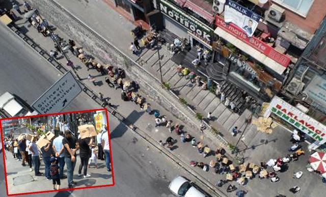 Bahçelievler'de ucuz baklava kuyruğu; Kartonlarla güneşten korundular