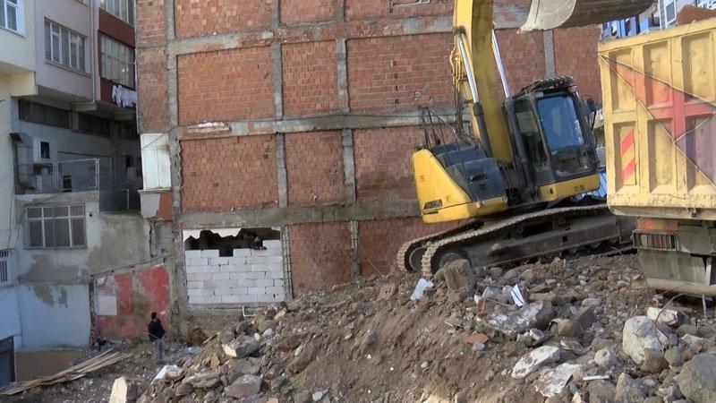 Bahçelievler'de yıkılan binanın bitişiğindeki apartmanın bodrum katı duvarsız kaldı