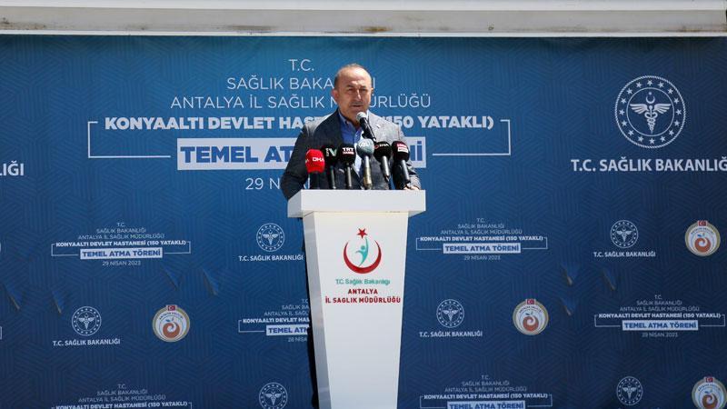 Dışişleri Bakanı Mevlüt Çavuşoğlu, Antalya'nın Konyaaltı İlçesi Sarısu Mahallesi'nde 150 yataklı Konyaaltı Devlet Hastanesi'nin temel atma törenine katıldı. Antalya Valisi Ersin Yazıcı, MHP Antalya Milletvekili Abdurrahman Başkan, Sağlık İl Müdürü İsmail Başıbüyük ve çok sayıda katılımcının yer aldığı temel atma töreninde konuşan Bakan Çavuşoğlu, Türkiye'nin sağlık alanındaki yatırımları, sağlık turizmi ve Sudan'daki tahliye sürecine yönelik açıklamalarda bulundu.