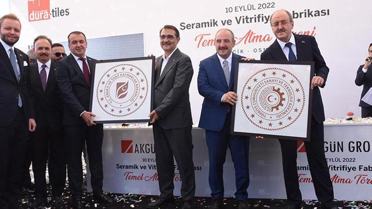 Enerji ve Tabii Kaynaklar Bakanı Fatih Dönmez ile Sanayi ve Teknoloji Bakanı Mustafa Varank, Bilecik’in Osmaneli ilçesi organize sanayi bölgesinde yer alan Akgün Şirketler Grubu’nun Osmaneli Seramik ve Vitrifiye Fabrikası’nın temel atma törenine katıldı.