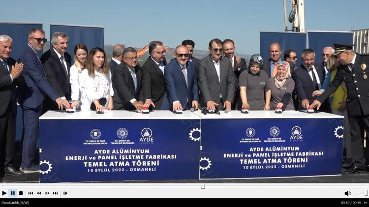 Enerji ve Tabii Kaynaklar Bakanı Fatih Dönmez ile Sanayi ve Teknoloji Bakanı Mustafa Varank, Bilecik'in Osmaneli ilçesindeki AYDE Alüminyum firmasına ait fabrikanın temel atma törenine katıldı.