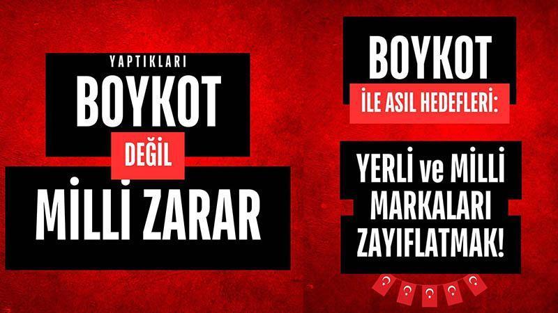 Sanayi ve Teknoloji Bakanı Mehmet Fatih Kacır, "Üretim ve istihdam Türkiye’nin milli gücüdür. Bu gücü kırmaya çalışmak, milli markaları boykot çağrılarıyla zayıflatmaya çabalamak Türkiye’nin ortak geleceğine zarar vermektir" dedi.