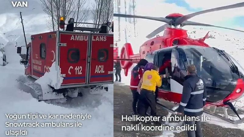 Sağlık Bakanı Fahrettin Koca Twitter hesabından yaptığı paylaşımda, "Van Bahçesaray'a bağlı bir köyden; kanama ve ağrı şikayeti sebebiyle çağrı aldığımız hastaya, ekiplerimiz tipi ve kardan dolayı Snowtrack ambulansla ulaştı. Hasta uygun alanda helikopterle alınıp Van Eğitim Araştırma Hastanesine ulaştırıldı. Kendisinin ve bebeğinin durumu iyi" ifadelerini kullandı.