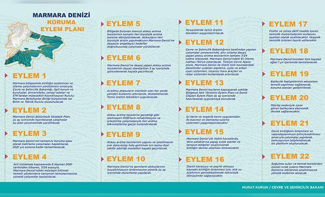 Çevre ve Şehircilik Bakanı Murat Kurum, 'Marmara Denizi Koruma Eylem Planı'yla ilgili paylaşımında "Çalışmalarımıza; 700 bilim insanı katıldı. Yerel yöneticilerimizle istişare ettik. 300 kişilik uzman ekibimizle, 91 noktadan düzenli olarak alınan numunelerle bilimsel testler yaptık. Çevre laboratuvarlarımızda 100 uzmanla biyokimyasal etütler düzenledik" açıklamasında bulundu.
