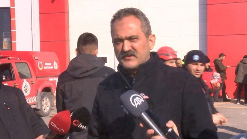 "Millî Eğitim Bakanlığı’na bağlı olan okullarda, pansiyonlarda, yurtlarda, öğretmenevlerinde yaklaşık 450 bin vatandaşımıza barınma hizmeti veriyoruz. Yine Millî Eğitim Bakanlığı’na bağlı yaklaşık 5 bin kişilik arama kurtarma ekibi tüm illerimizde AFAD'a yardım ederek arama kurtarma çalışmalarına destek oluyorlar. 2 bin öğretmenimiz 10 ilimizdeki vatandaşlarımıza psikolojik destek vermek için sahada aktif olarak çalışıyorlar. Diğer illerden gelen on binlerce gönüllü öğretmenimiz de sahada hem organizasyonlarda hem çadırların, toplanma yerlerinin organizasyonunda hem gelen malzemelerin tasnif işlemlerinde aktif olarak çalışıyorlar. Yani sadece 10 ilde değil, 81 ildeki tüm Milli Eğitim camiası 10 ilin yaralarını sarmak için seferber oldu. Dolayısıyla 81 ilde eğitim öğretime ara vermeseydik diğer bu lojistik destekleriyle ilgili aksamalar yaşanacaktı. Onun için 71 ilde de bu süreci eş güdümlü bir şekilde yürütüyoruz. Yavaş yavaş diğer birimler devreye girdikçe biz çekileceğiz."