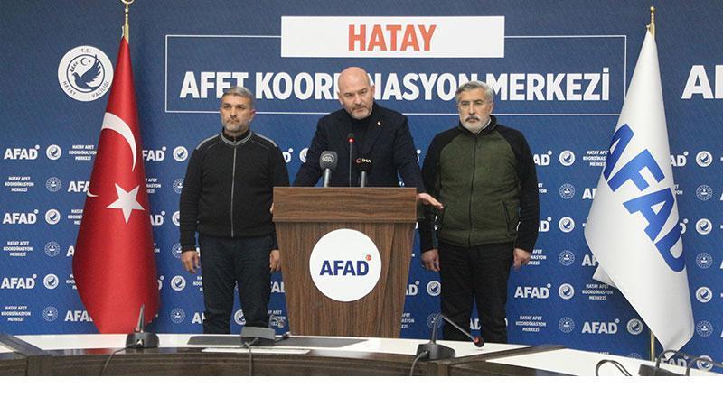 İçişleri Bakanı Süleyman Soylu, Milli Savunma Bakanı Hulusi Akar ve Sağlık Bakanı Fahrettin Koca, Hatay İl Afet ve Acil Durum Yönetim Merkezi’nde düzenlenen koordinasyon toplantısına katıldı. Toplantının ardından basın açıklaması yapan Bakan Soylu, 21 Şubat’ta Hatay Defne ve Samandağ merkezli 6.4 ve 5.8 büyüklüğündeki depremlerden sonra 6 kişinin hayatını kaybettiğini, 18’i ağır 562 kişinin yaralandığını söyledi. Hatay'da şu an 5 enkaz kaldığını dile getiren Bakan Soylu, "5 enkaz da bitince arama- kurtarma çalışmaları sona erecek. Dün akşamki deprem olmasaydı, bu çalışma bugün itibariyle sonuçlanmış olacaktı" dedi.
