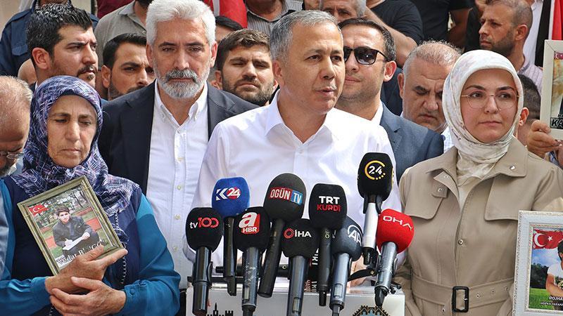 İçişleri Bakanı Ali Yerlikaya, bir dizi ziyaretlerde bulunmak üzere geldiği Diyarbakır'da, Vali Ali İhsan Su'yu makamında ziyaret etti. Bakan Yerlikaya, valilik şeref defterini imzaladıktan sonra Vali Su ile basına kapalı toplantı yaptı. Bakan Yerlikaya'ya, AK Parti Milletvekili Galip Ensarioğlu ve İl Emniyet Müdürü Fatih Kaya eşlik etti. Bakan Yerlikaya, daha sonra HDP İl Binası önünde evlat nöbeti tutan ailelerle buluştu. Bakan Yerlikaya, ailelere kırmızı karanfil verip, bir süre sohbet etti. Burada konuşan Bakan Yerlikaya, 4 yıldır süren evlat nöbetinin büyük ses getirdiğini ifade ederek, "Hacire Akar annemiz, bundan tam 1394 gün önce oğluna kavuşabilmek amacıyla, burada, evlat nöbeti süreci başlatmıştı. 3 Eylül 2019'dan beri Hacire annemiz öyle bir öncülük yaptı ki; 43 vilayetten 360 annemiz, onun çağrısıyla, anne şefkati, sabrı, dayanma gücüyle buraya geldiler. Dile kolay, 4 yıldan beri anneler evlatlarını çağırma noktasında buradalar. Bu çağrıya 42 evlat cevap verdi, annelerine kavuştular. Değerli kardeşlerim, annelerin çağrısı sadece burada değil, bu bina önünde değil, tüm yurtta ve dünyada büyük bir ses getirdi. Adeta çığlık oldu. 'Evladımızı istiyoruz' sözü, kulaktan kulağa, gönülden gönüle çağladı" dedi.