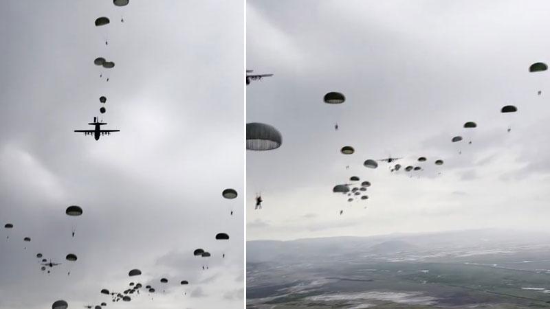 Milli Savunma Bakanlığı, Kara Kuvvetleri Komutanlığı'na bağlı 1'inci Komando Tugayı Komutanlığı tarafından düzenlenen ve 13 ülke askerinin fiilen katıldığı 'Erciyes-2025' tatbikatından, komandoların paraşütle atladığı görüntüleri, sosyal medya hesabından paylaştı.