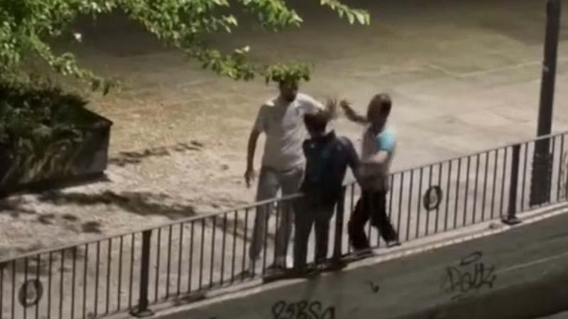 Bakırköy'de 2 şüpheli, tartıştıkları kişiyi tekme ve yumruklarla darbetti. Sesleri duyarak pencereye çıkanlar o anları cep telefonu kamerasıyla kaydetti.