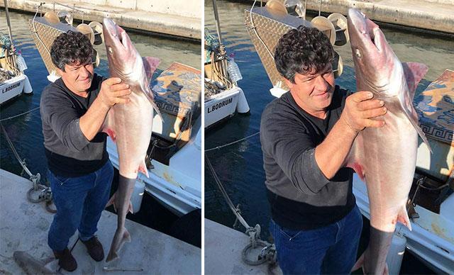 Balıkçı ağına 2 köpek balığı takıldı