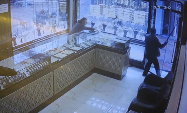 Balıkesirde kuyumcu, silahlı soyguncuyu sopayla kovaladı