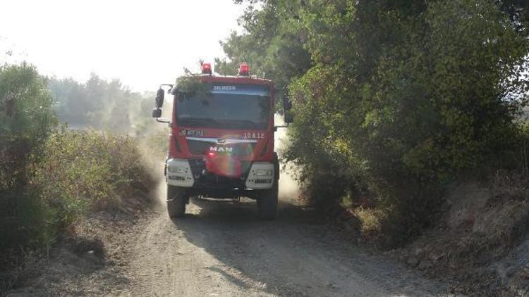 Balıkesir Orman Bölge Müdürlüğü tarafından bölgeye sevk edilen 10 arazöz, 3 su ikmal aracı, 2 yer ekibi ile karadan, 5 helikopter ve 2 uçak ile havadan yangına müdahaleye başlandı.
