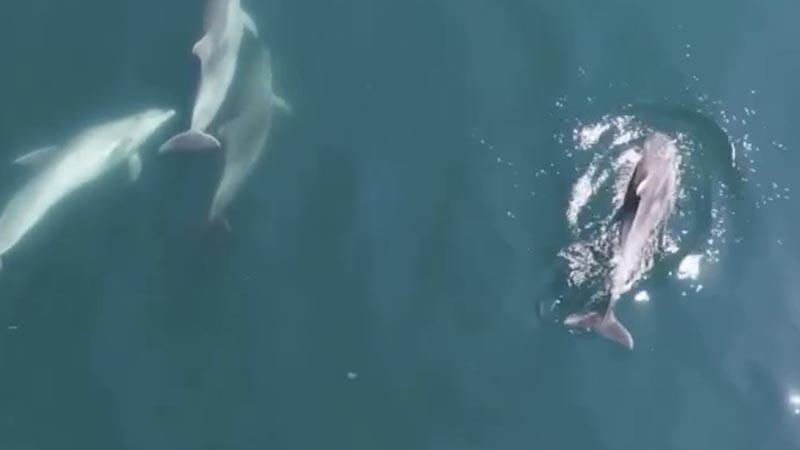 Kızılkum sahilinde vatandaşlar öğle saatlerinde kayalıklarda gezdikleri sırada kıyıya kadar gelen 4 yunus gördü. Suyun içinde adeta dans ederek yüzen yunuslar, çevredekiler tarafından cep telefonu ile kaydedildi. Yunuslar bir süre sonra dibe dalarak gözden kayboldu.