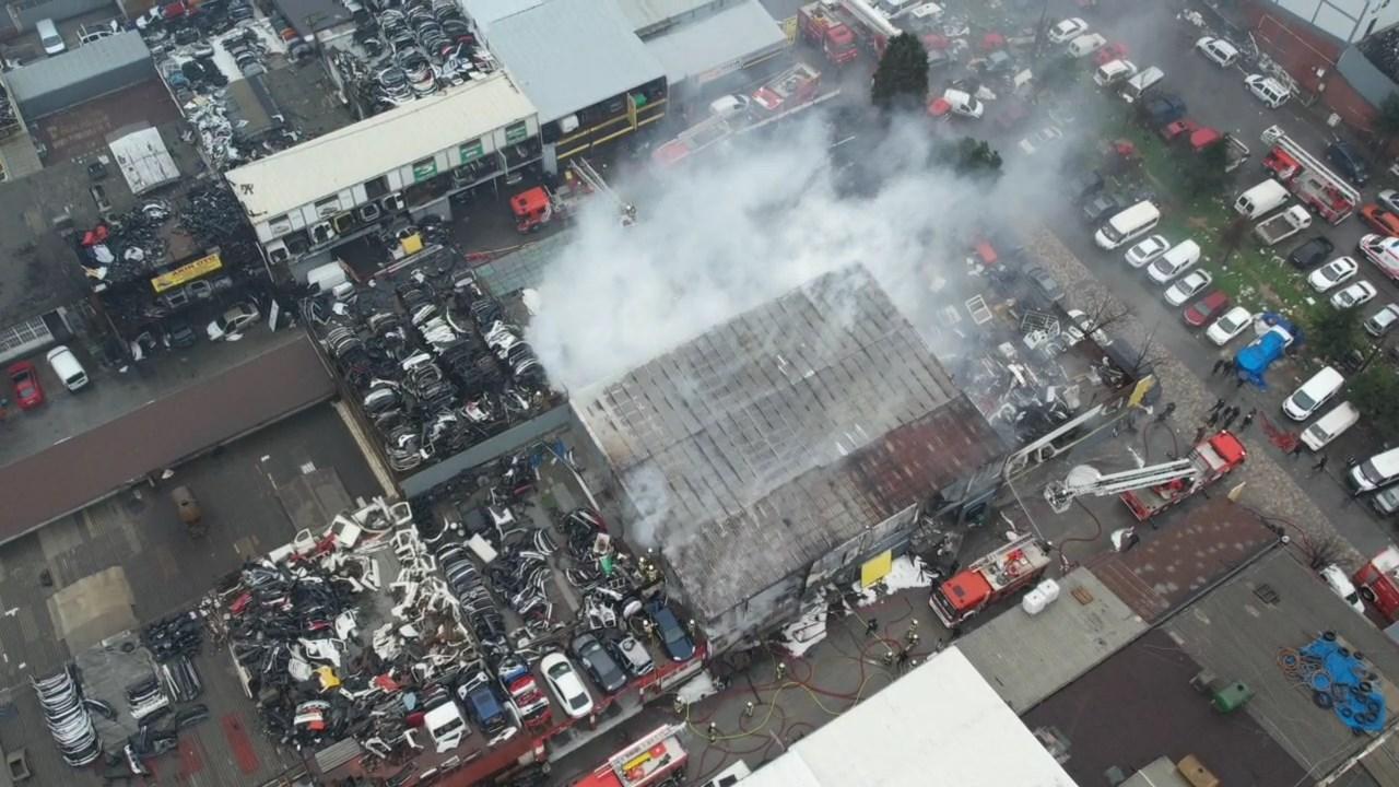Başakşehir'de Oto Sanayi Sitesi'nde bulunan iş yerinde çıkan yangın itfaiye ekipleri tarafından söndürüldü. Büyük hasar oluşan iş yerinin alev alev yandığı anları çevredekiler cep telefonu kamerasıyla görüntüledi.