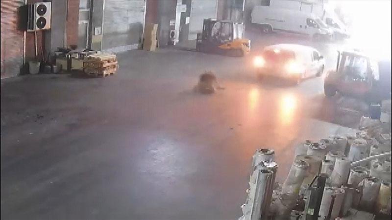 Başakşehir'de, bir iş merkezinin depo bölümünde geri manevra yapan hafif ticari araç bir kişiye çarptı. Çarpmanın etkisiyle yere düşen kişi hafif yaralanırken, kaza anı güvenlik kamerasına yansıdı.