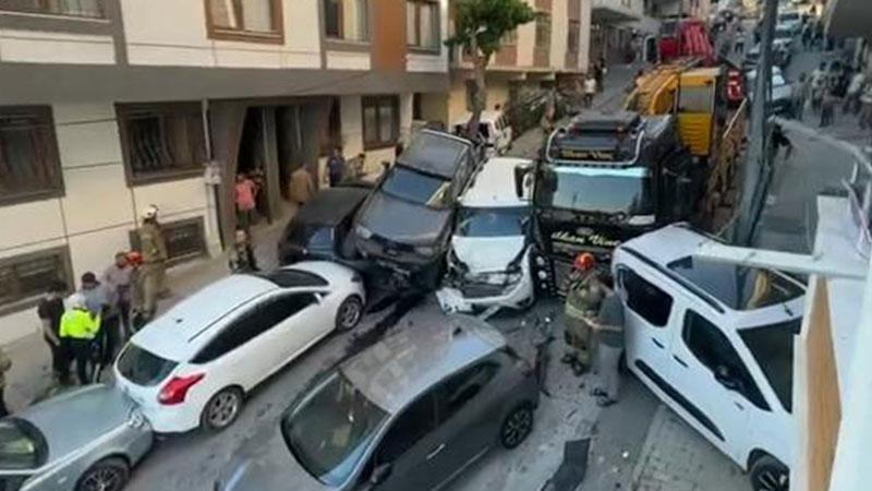 Başakşehir'de kayan vinç park halindeki 23 araca çarptı
