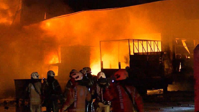 Başakşehir'de sanayi bölgesinde kargo deposunda yangın; çok sayıda araç zarar gördü