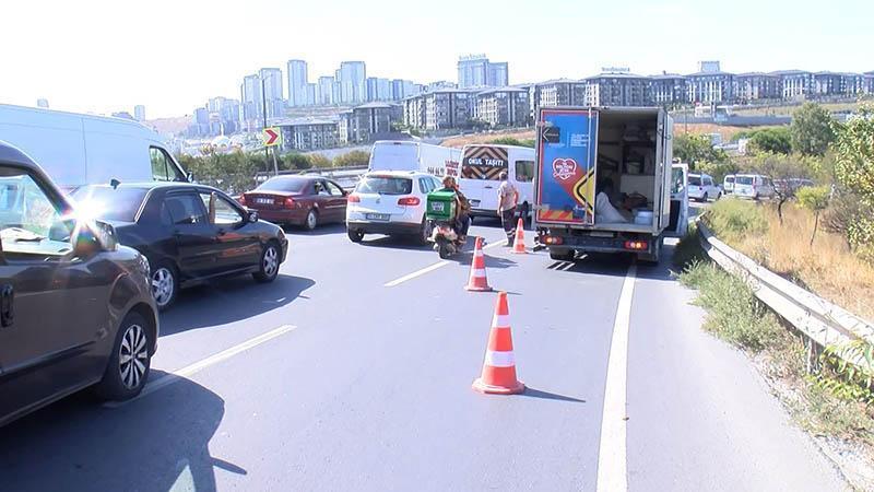 Başakşehir'de yola düşen mermerler trafik yoğunluğu oluşturdu; su tankerinin lastiği patladı