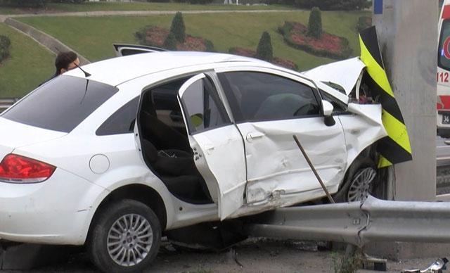 Bahçelievler Basın Ekspres Yolu'nda önünde seyreden otomobile vuran araç daha sonra yön levhasına çarparak durabildi. Kazada levha direğine çarpan aracın sürücüsü yaralandı.