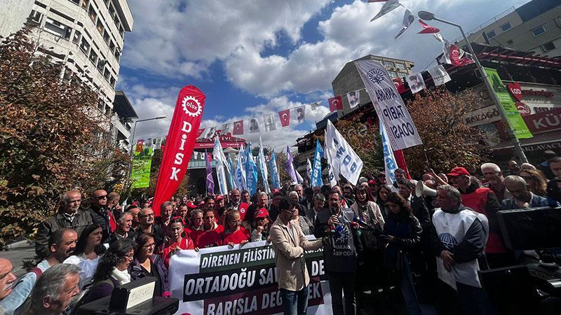 Devrimci İşçi Sendikaları Konfederasyonu İç Anadolu Bölge Temsilciliği, Kamu Emekçileri Sendikaları Konfederasyonu (KESK) Ankara Şubeler Platformu, Türk Mühendis ve Mimar Odaları Birliği Ankara İl Koordinasyon Kurulu, Ankara Tabip Odası ve Ankara Dişhekimleri Odası tarafından Sakarya Caddesi’nde Filistin’e destek açıklaması yapıldı. Toplanan 200 kişilik grup 'İsrail, Filistin'den defol', 'katil İsrail', 'yaşasın halkların kardeşliği', 'Filistin halkı yalnız değildir' sloganları attı.