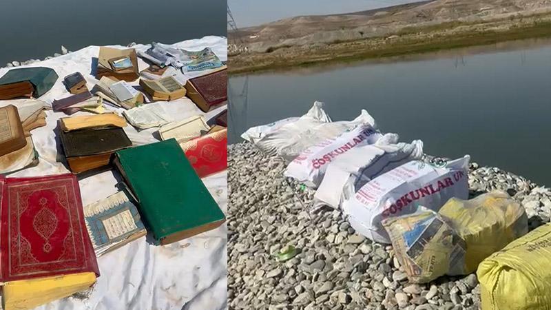 Batman Çayı kıyısında çuvallar içerisinde çok sayıda Kur'an-ı Kerim bulundu.