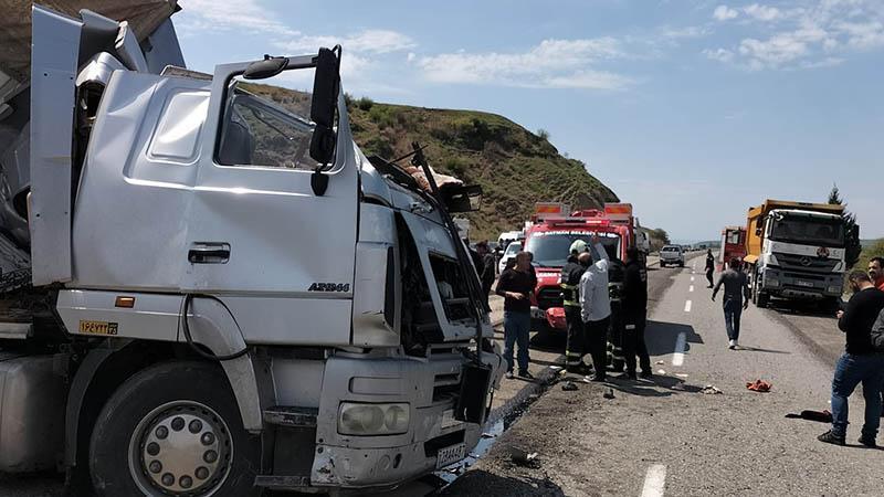 Kaza, öğle saatlerinde Batman-Kozluk kara yolu Samanyolu köyü yakınında meydana geldi. Yol çalışması nedeniyle tek şeride düşen yolda tuğla yüklü 02 AJ 577 plakalı TIR ile karşıdan yönden gelen 28 AA 487 plakalı TIR kafa kafaya çarpıştı.