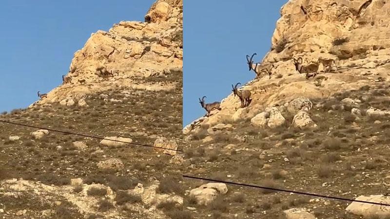 Doğa Koruma ve Milli Parklar Müdürlüğü ekipleri, yaşadıkları bölgeleri fotokapanla takip ettikleri sırada, kayalıklarda koruma altındaki dağ keçilerinin olduğunu fark etti. Ekipler, kayalıklara tırmanan dağ keçilerini cep telefonu kamerasıyla görüntüledi. Bir süre çevrede dolaşan dağ keçileri, daha sonra gözden kayboldu.