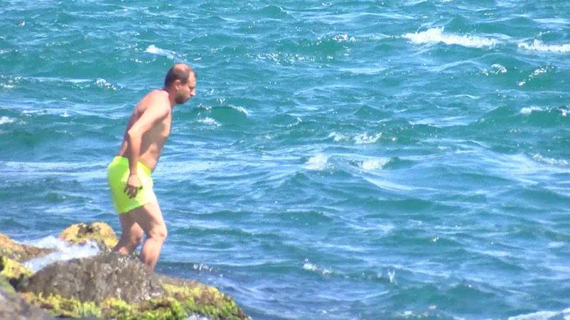 Oğluyla sahile geldiğini söyleyen İdris Akbulut, "Her sene buradayız. Burayı çok seviyoruz. Buradan denize atlıyoruz ardından 10 metre ileriden çıkıyoruz. Çok zevkli, çok temiz. Ancak çok derin, 60 metreden başlıyor 80 metreye kadar derinliği çıkıyor. Yüzmeyi bilmeyenler burada yüzmesinler. Yazık, anneleri ağlar. Ama akıntıya atla git, taksi gibi, ne yakıt yakarsın ne benzin yakarsın" dedi.