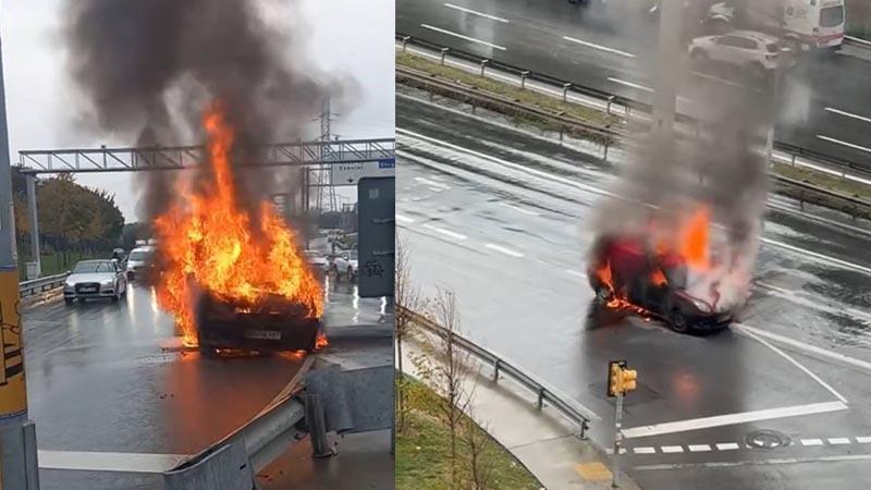 Bayrampaşa’da hafif ticari araç alev alev yandı