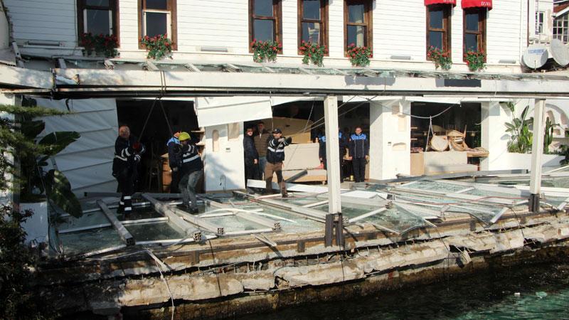 Beşiktaş Bebek'te çöken restoranın iskelesi söküldü.