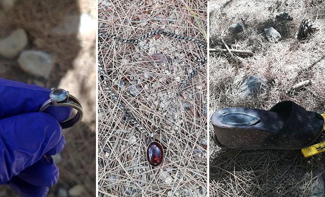 Antalya'nın Korkuteli ilçesindeki ormanlık alanda bulunan belden yukarısı olmayan kadın cesedinin kimliğini belirlemek için çevresinde bulunan kolye, yüzük, altın küpe ve terlik mercek altına alındı.
