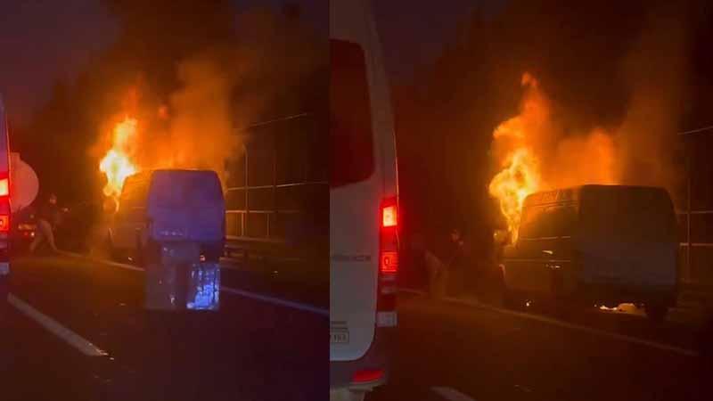 Yangın, saat 19.00 sıralarında TEM Otoyolu Beşiktaş Mevkii'nde çıktı. Edinilen bilgiye göre Esat Y. idaresindeki seyir halindeki minibüsün elektrik aksamında bilinmeyen bir nedenle arıza meydana geldi. Arızanın ardından motor kısmından yükselen alevler kısa sürede büyüyerek minibüsün ön kısmını sardı. Çevredekilerin ihbarı üzerine bölgeye itfaiye, acil sağlık ve polis ekipleri geldi. Alevler itfaiye ekiplerinin müdahalesiyle söndürüldü. Sağlık ekiplerinin kontrollerinde yangında yaralanan kimsenin olmadığı belirlendi. Yangın nedeniyle otoyolda trafik akışı kısa süreliğine kontrollü olarak sağlandı. Minibüsün yandığı anlar çevredeki kişiler tarafından cep telefonu kamerasıyla görüntülendi.