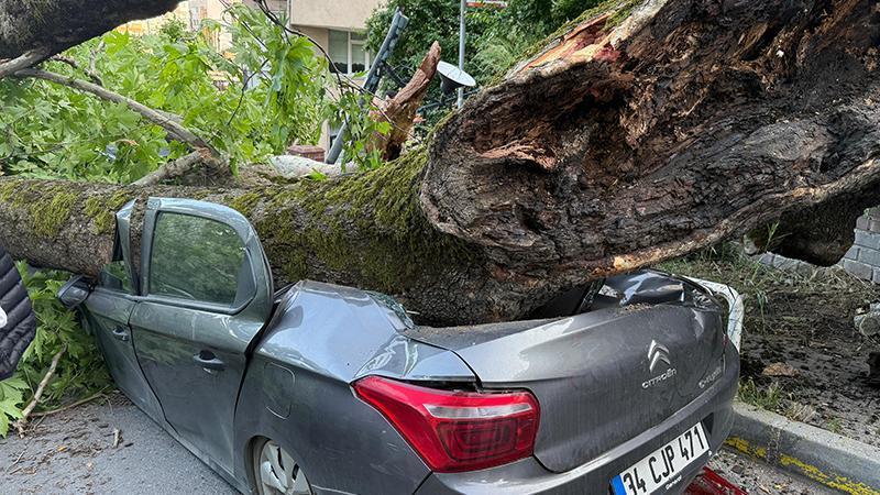 BeÅŸiktaş’ta 150 yıllık aÄŸaç devrildi: 3 araç kullanılamaz hale geldi