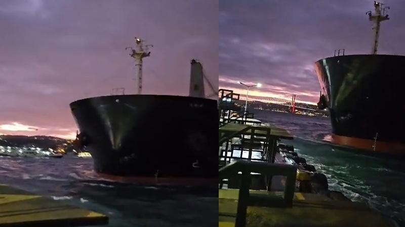 Beşiktaş açıklarında makine arızası nedeniyle sürüklenen kuru yük gemisi, iskeleye çarpmadan son anda durdu. İskelede yaşanan paniği çevredekiler cep telefonu kamerasıyla kaydetti.