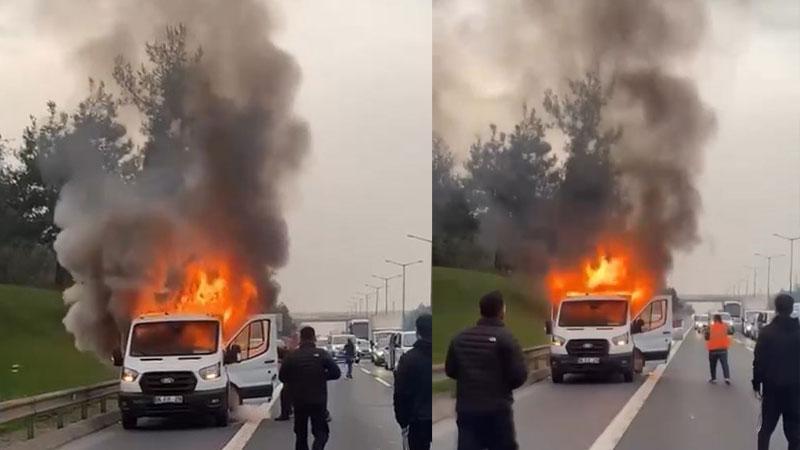 Beykoz TEM Otoyolu'nda kamyonet alev alev yandı