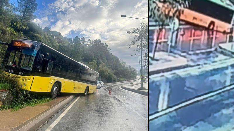 Beykoz'da kayganlaşan yolda İETT otobüsü kazası kamerada