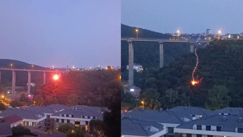 Öte yandan yangının çıkış anı cep telefonu kamerasıyla kaydedildi. Görüntülerde, işaret fişeği olduğu öğrenilen yanıcı maddenin ağaçlık alana düştüğü, ardından orman yangınının başladığı görülüyor.