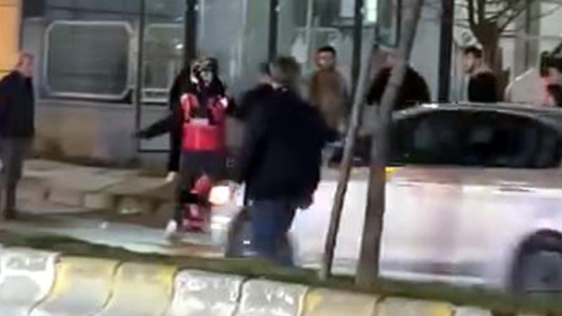 Beylikdüzü’nde iddiaya göre bir kişi yolda ilerleyen motokuryeye laf atarak sataştı. Taraflar arasında çıkan tartışma kavgaya dönüşürken, motokuryenin arkadaşları da kavgaya dahil oldu. Laf attığı iddia edilen kişi kask ve yumruklarla darbedilirken, yaşananlar cep telefonu kamerasına yansıdı.