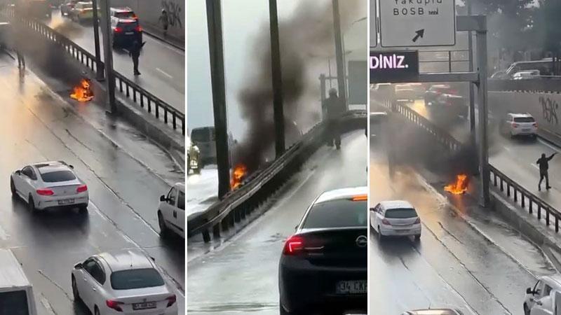 Beylikdüzü Yakuplu Mahallesi D-100 Karayolu'nda saat 09.30 sıralarında seyir halindeki bir motosiklette bilinmeyen bir nedenle yangın çıktı. Motosikletten dumanlar çıktığını gören sürücü yol kenarına park ederek indi. Yangın motosikleti tamamen sardı. İhbar üzerine olay yerine sevk edilen itfaiye ekiplerinin müdahalesiyle yangın söndürüldü. Yangın, yoldan geçen diğer araçların sürücüleri tarafından cep telefonuyla görüntülendi.