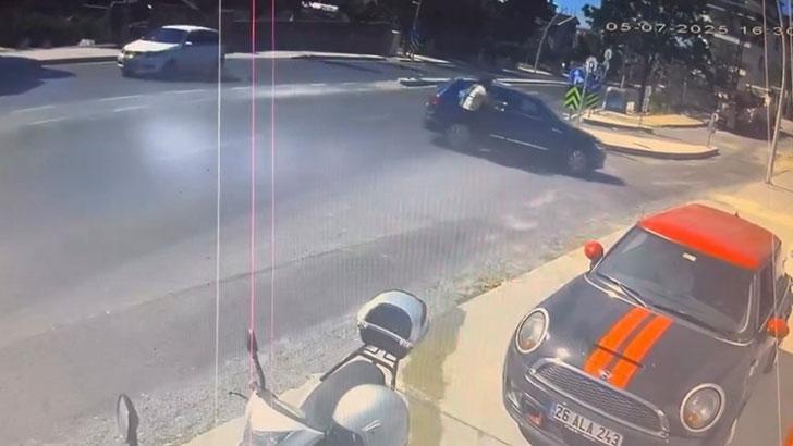 Beylikdüzü'nde skuterla ilerleyen bir kişi, aynı anlarda U dönüşünün yasak olduğu yerden dönmeye çalışan otomobile çarptı. Şans eseri yaralanan kimsenin olmadığı kaza güvenlik kamerasına yansıdı.