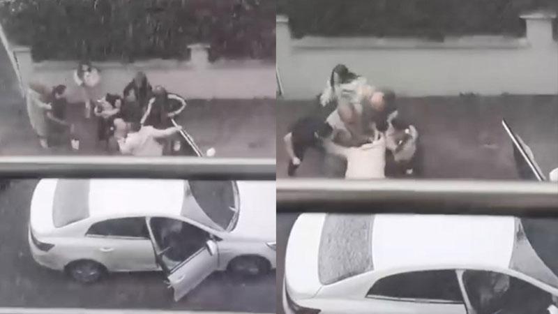 Olay, dün saat 11.30 sıralarında Kavaklı Mahallesi Katip Çelebi Sokak'ta meydana geldi. İddiaya göre, otomobil sürücüsü ile yaya arasında henüz bilinmeyen nedenle tartışma çıktı. Kısa sürede kavgaya dönüşen olaya tarafların yakınları da dahil oldu. Bu sırada yoldan geçen bir anne de kucağındaki çocuğuyla kavgayı ayırmaya çalıştı. Çevredekilerin de araya girmesiyle taraflar ayrılırken yaşananlar cep telefonu kamerasıyla kaydedildi.