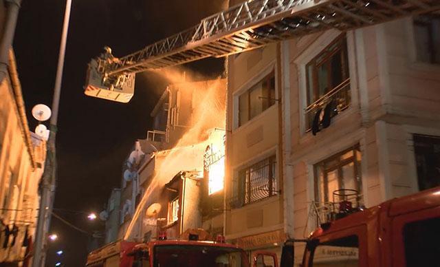 Beyoğlu'nda 3 katlı bina alev alev yandı