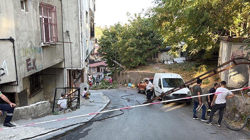 Beyoğlu'nda devrilen ağaç elektrik direklerini yıktı: 2 araç hasar gördü