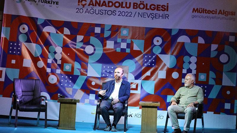 Nevşehir'de Genç Türkiye Forumu tarafından düzenlenen programa katılan Türkiye İlim Yayma Vakfı Mütevelli Heyeti Başkanı Bilal Erdoğan, "Buradaki temel mantık, gençlerin gündeminde olan belli başlı konuları gençlerle konuşup müzakere etmek" dedi.