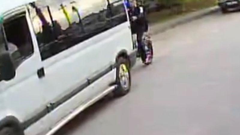 Bisikletli çocuk, minibüsün altından kalmaktan son anda kurtuldu