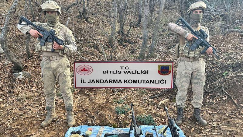 İl Jandarma Komutanlığı ekiplerinin Tatvan ve Hizan ilçeleri kırsalına düzenlediği operasyonda arazi arama-tarama faaliyeti yapıldı. Aramalarda teröristlere ait 1 Bixi makineli tüfek, 2 keskin nişancı tüfeği, 1 el bombası, 1 antipersonel roketatar mühimmatı, 3 roketatar sevk fişeği, 1 antitank roketatar başlığı, 1 ateşleme anahtar sistemi, 447 çeşitli çap ve markalarda mühimmat, 5 kanas keskin nişancı tüfeği şarjörü, 3 keskin nişancı silah dürbünü, 1 holografik nişan aleti, 1 Yaesu marka araç telsizi, 16 blok haline dönüştürülmüş pil, 200 metre elektrik kablosu, 1 muhtelif el yapımı patlayıcı yapım malzemeleri, çok miktarda giyim, gıda ve yaşam malzemesi ele geçirildi. Ele geçirilen ve delil niteliği malzemeler, Bitlis Cumhuriyet Başsavcılığı'nın talimatıyla muhafaza altına alınırken, diğer malzemeler ise olay yerinde imha edildi.