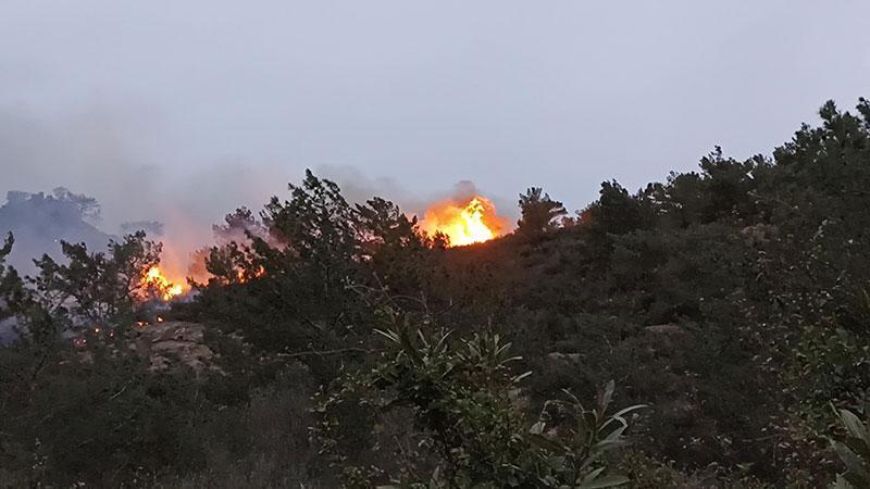 Yakaköy Mahallesi Çilek Caddesi mevkiinde saat 05.00 sıralarında orman ve makilik yangını çıktı. Rüzgarın etkisiyle alevler büyümeye başladı. Dumanları görenlerin ihbarı üzerine bölgeye çok sayıda itfaiye ve gönüllü sivil toplum kuruluşu ekibi sevk edildi. Polis ekiplerince yangın bölgesinin girişi araç trafiğine kapatıldı. Rüzgarın da etkisiyle yangın Dereköy mevkiine kadar ilerledi.